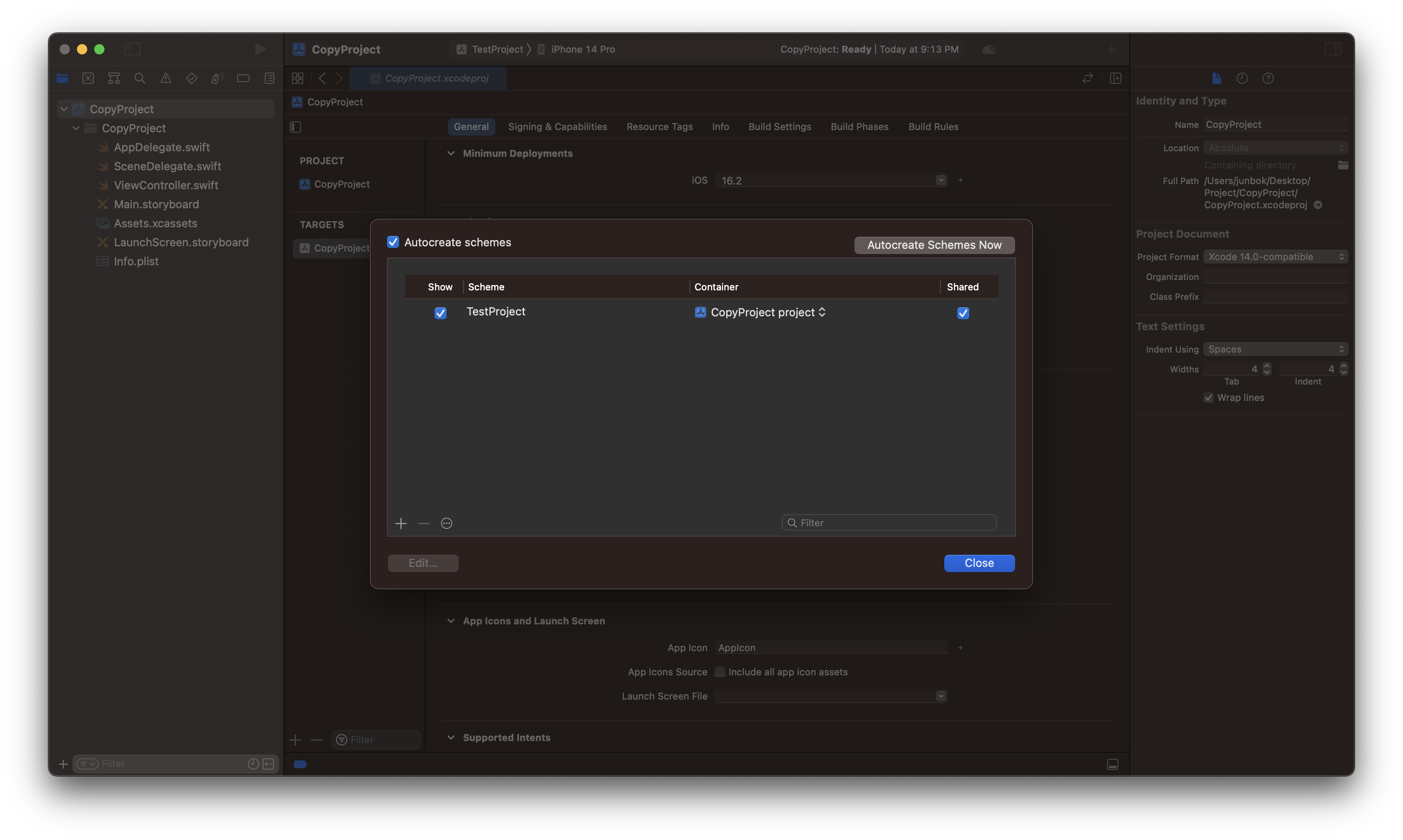 여기까지 변경했으면 성공적으로 프로젝트가 복사되었지만 간혹 오류가 나는 경우가 있어 폴더 내의 DerivedData를 한번 더 삭제 후 프로젝트 파일을 실행해준다.