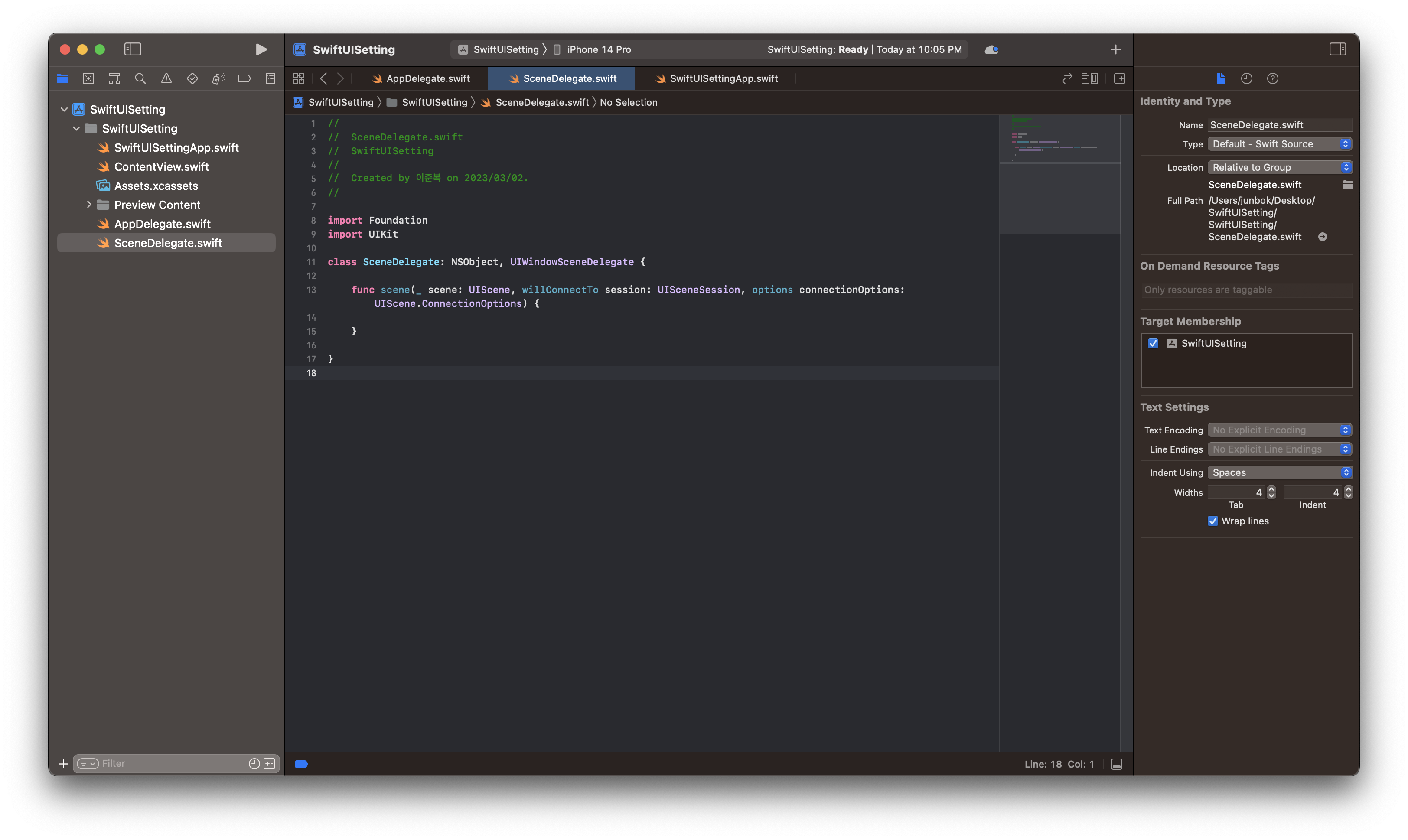 SceneDelegate 생성하기