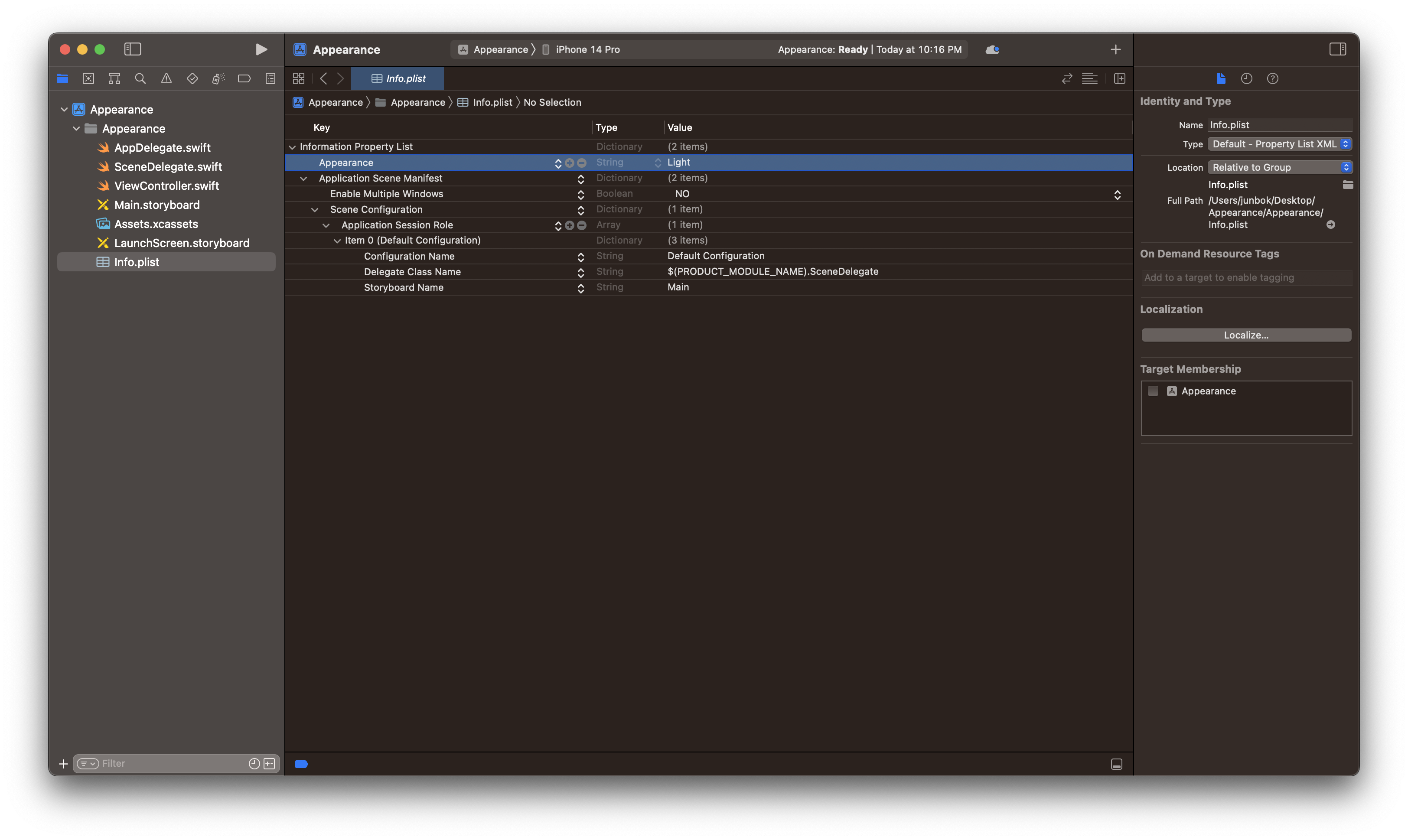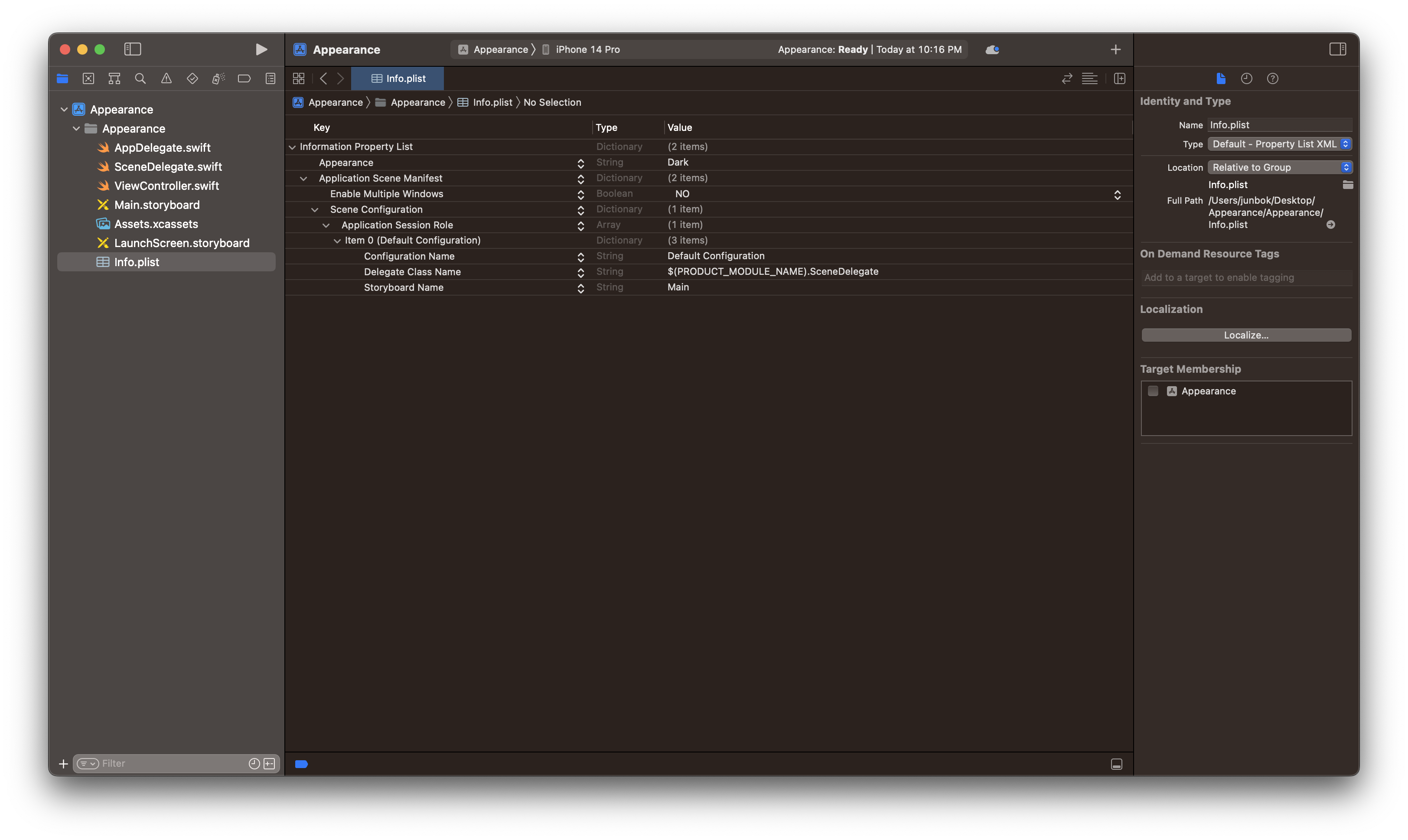 [iOS] info.plist에서LightMode, DarkMode 강제하기 본문