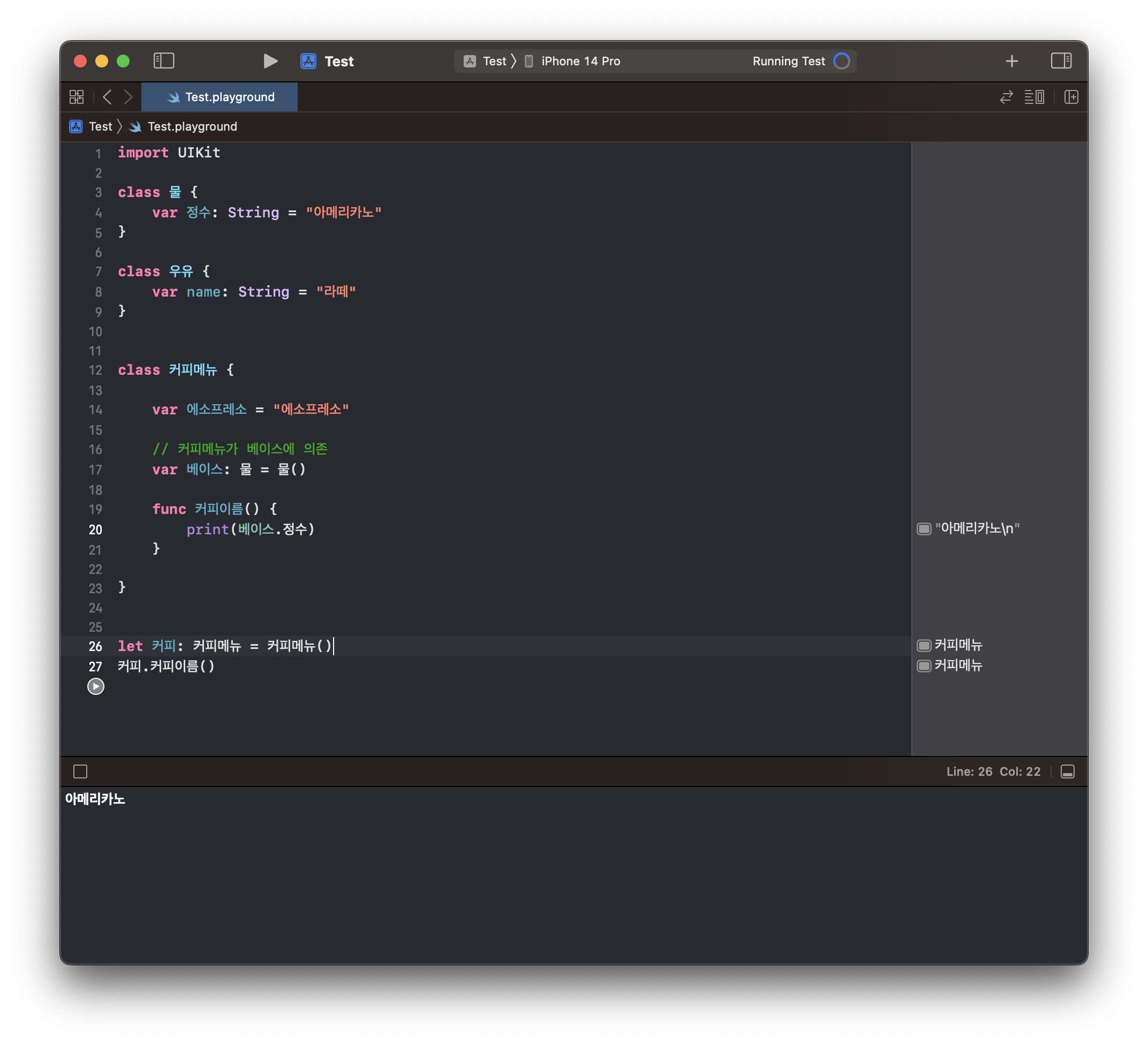 이제 커피메뉴는 추상화된 베이스프로토콜의존하고 있기 때문에 베이스가 물로 바뀌든 우유로 바뀌든 수정해야할 필요가 없어집니다.