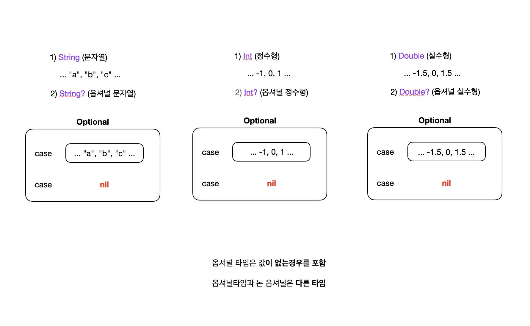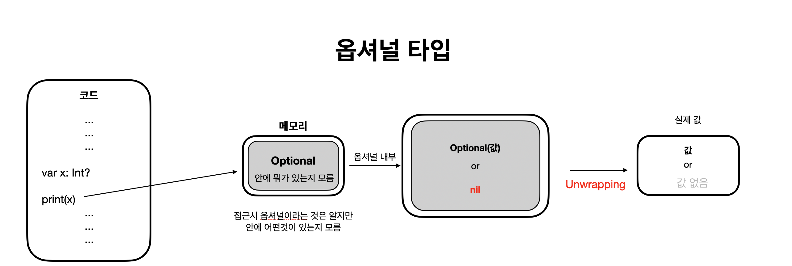 쉽게 이해하자면 옵셔널타입은 옵셔널 포장지로 감싸져 있기 때문에