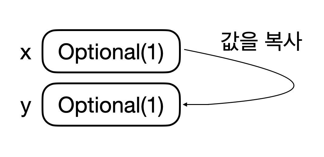 그렇기 때문에 옵셔널타입에 논옵셔널타입의 값을 복사할 수 있지만