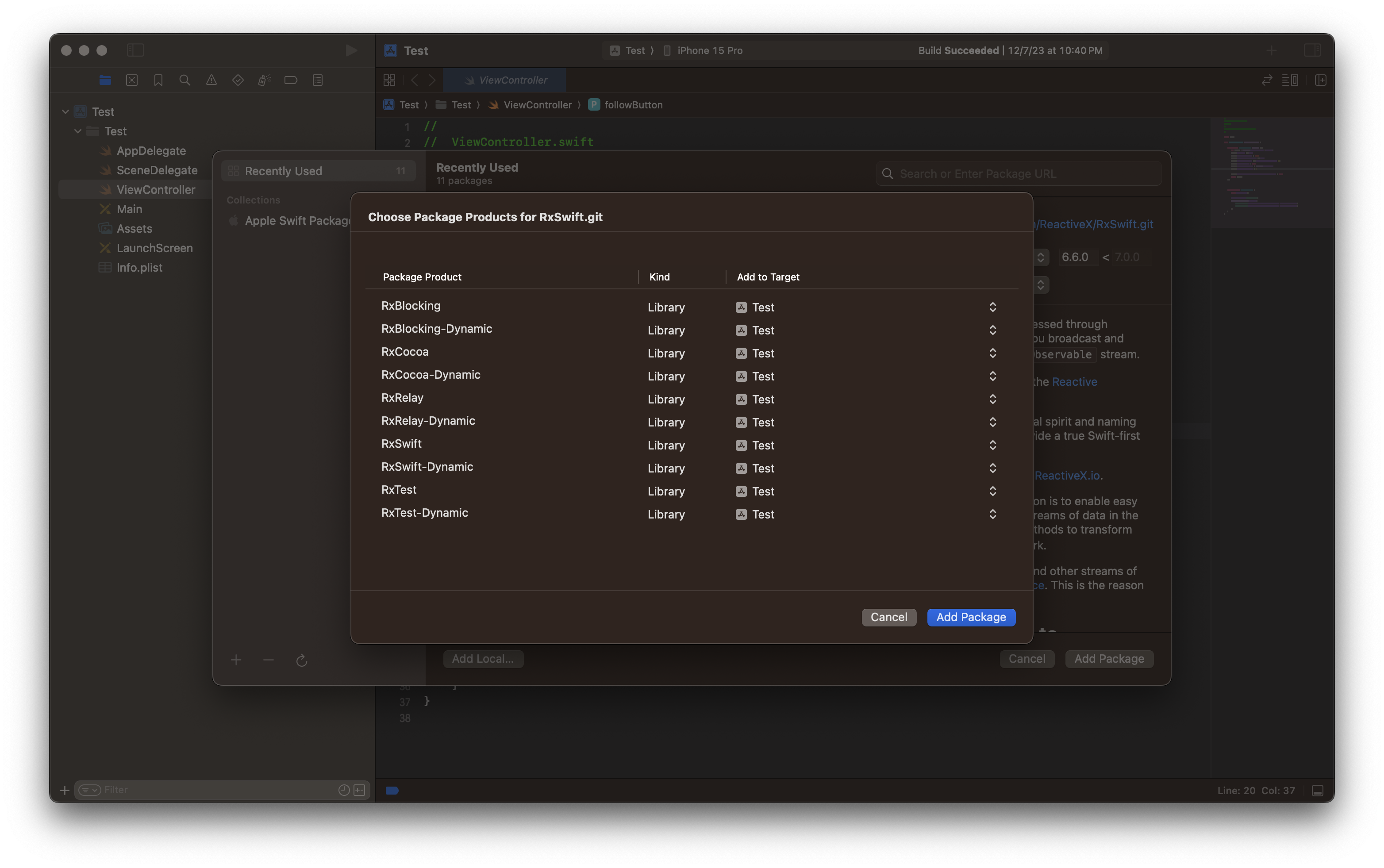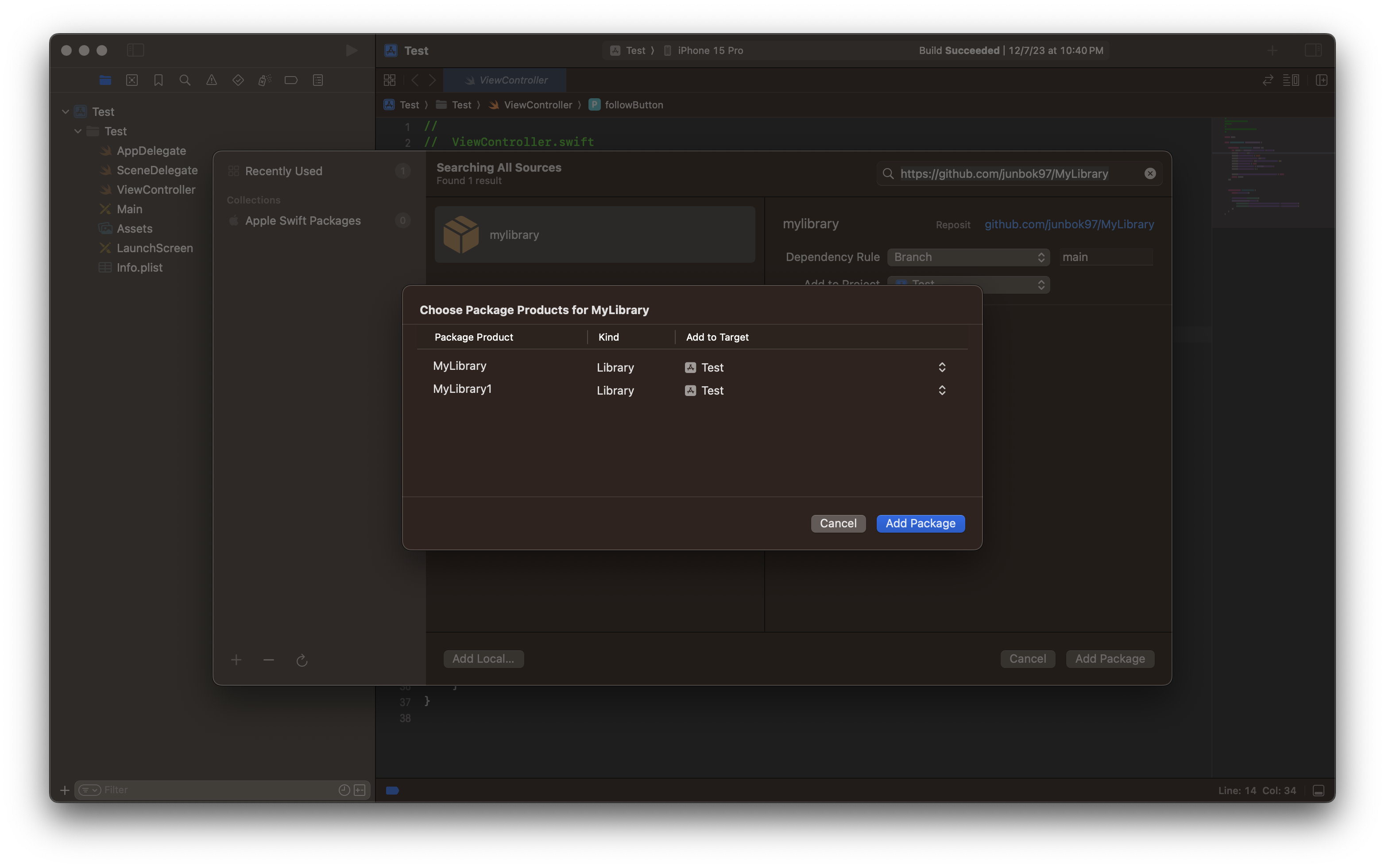 아래는 package전체에 추가하는 방법이다. target별로도 추가하는 방법은 3-2에서 설명한다.