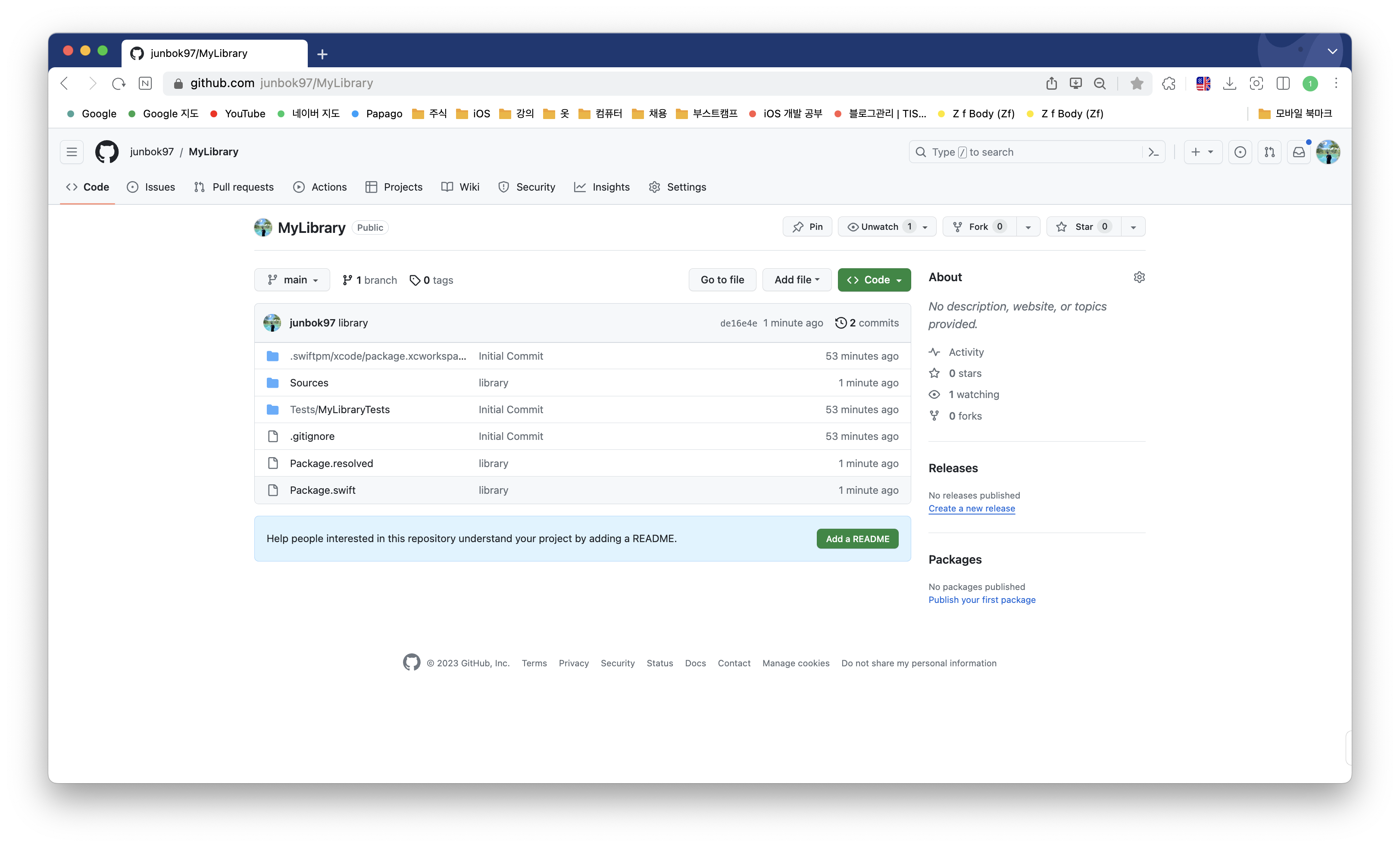 위와같이 패키지를 만들었으면 github에 추가하고 배포해주면 끝이난다.