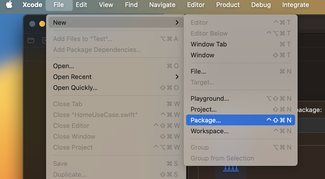 Xcode > File > New > Package 를 선택하여 Swift Package 프로젝트를 만들자