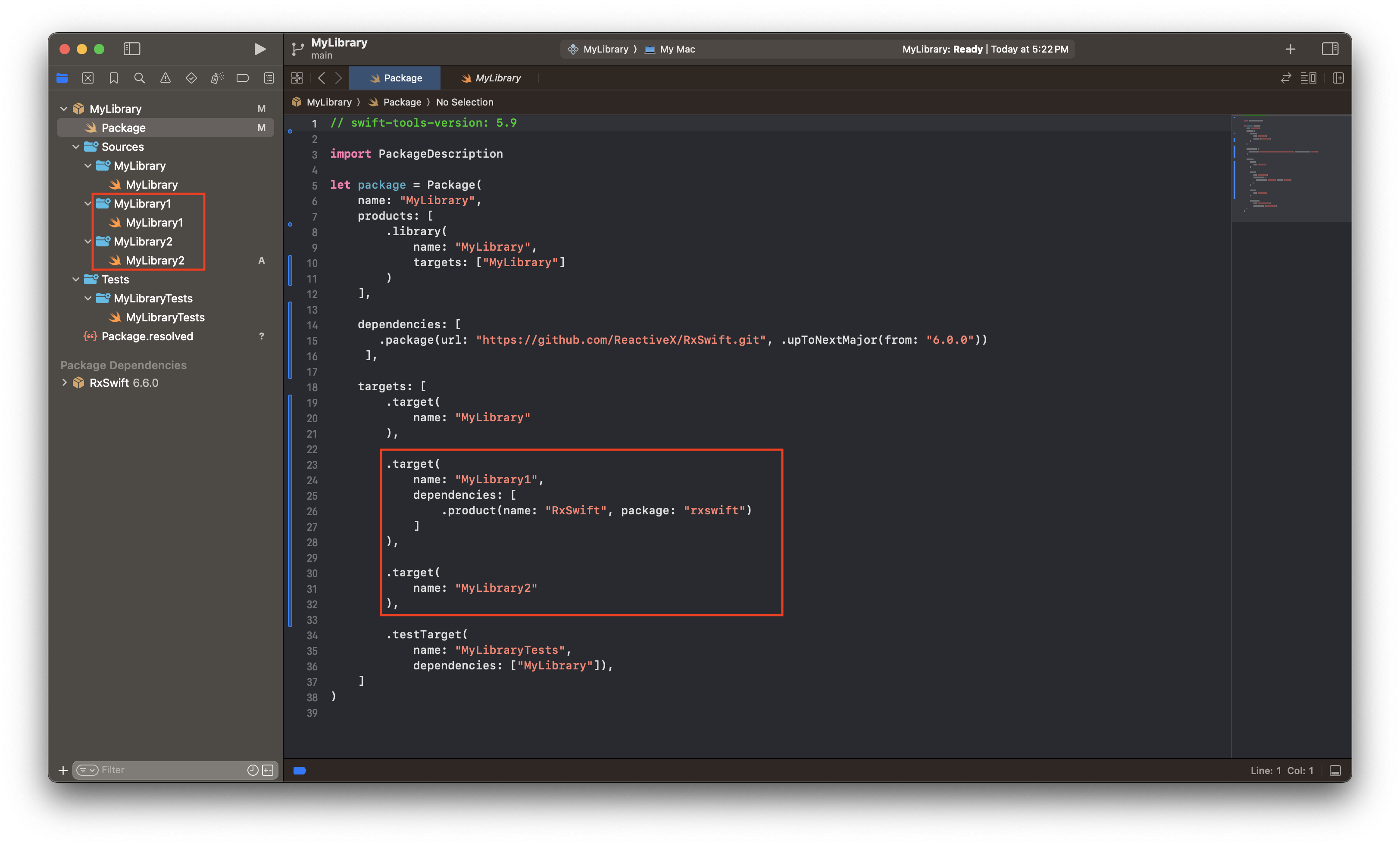 .library(name: "MyLibrary1", targets: ["MyLibrary1", "MyLibrary2"])