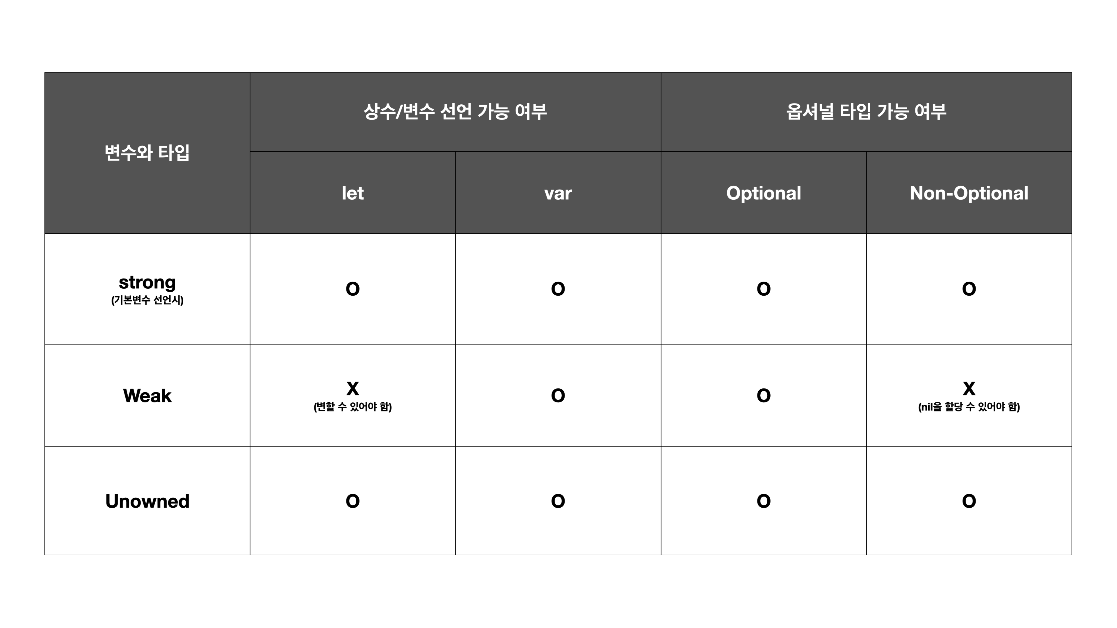 - 논 옵셔널일 때도 가르키는 곳의 RC가 안올라기 때문에 가르키는 곳이 비어 있다면 에러 발생