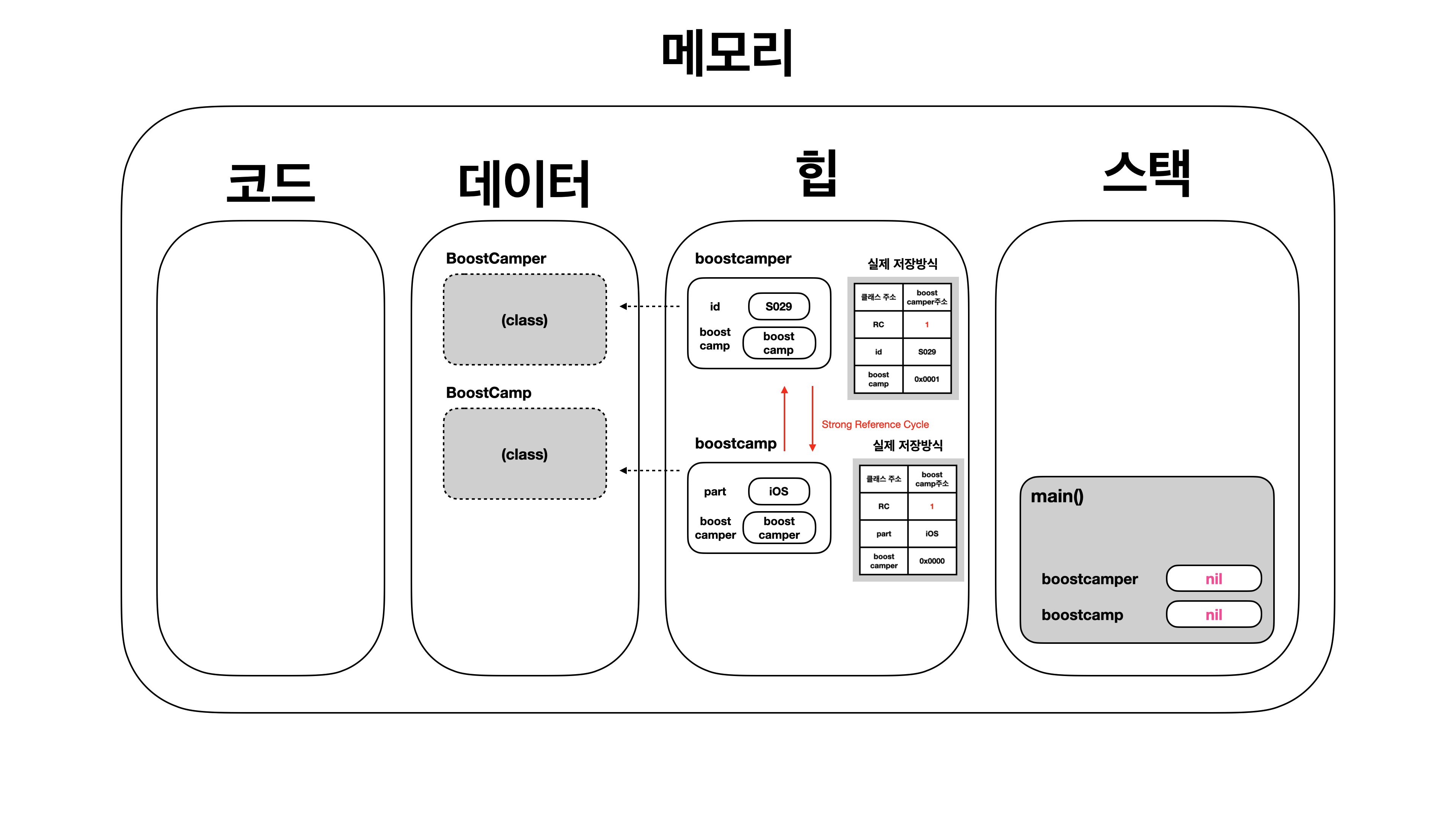 코드에선 boostcamper와 boostcamp가 nil이 되었지만 내부에서
