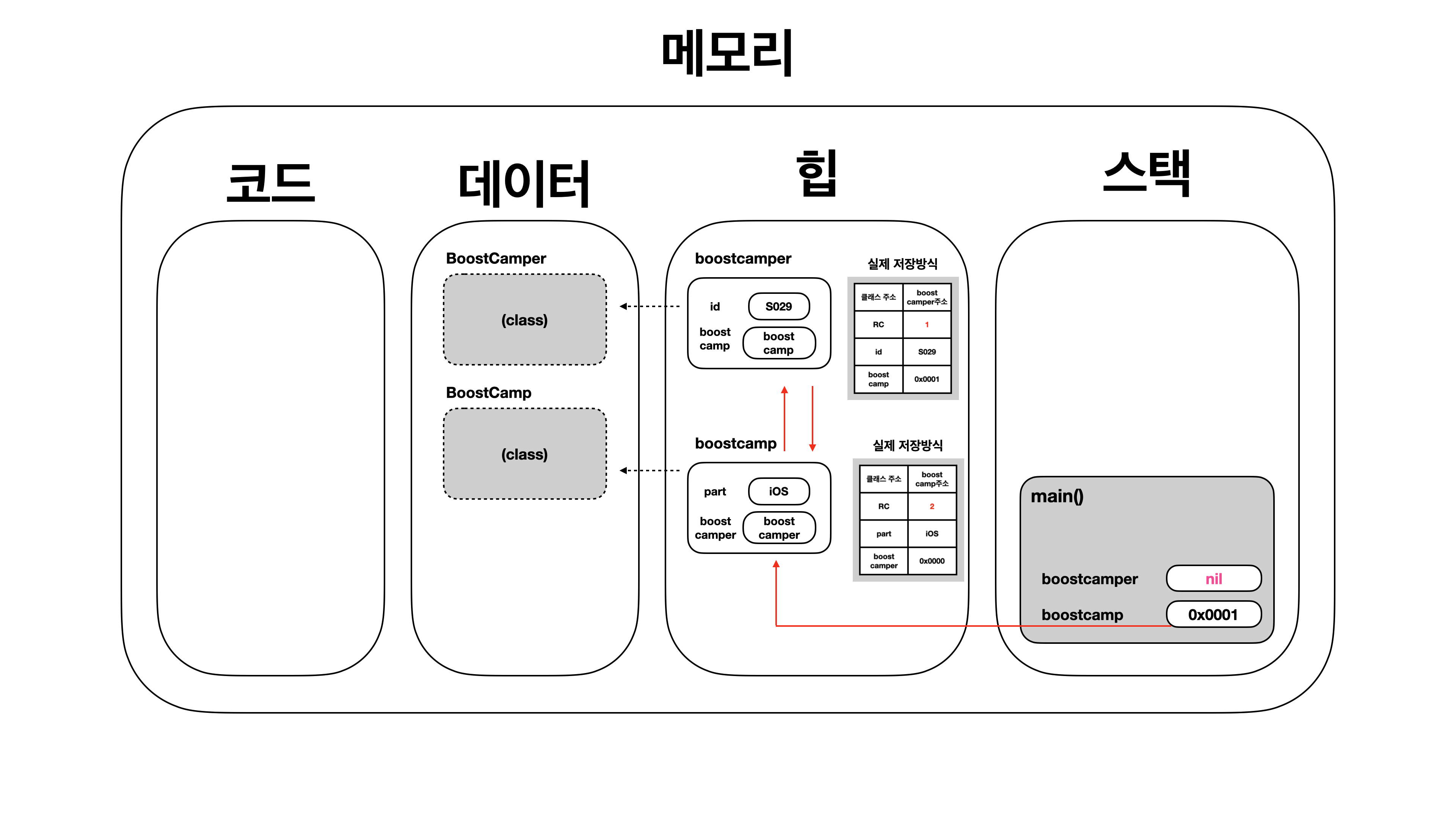 BoostCamper 클래스가 있을 때 Swift에서 힙에 메모리를 어떻게 할당하고 해제하는지 알아보자.