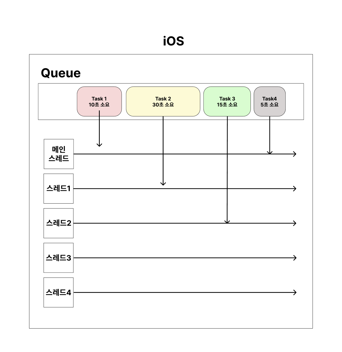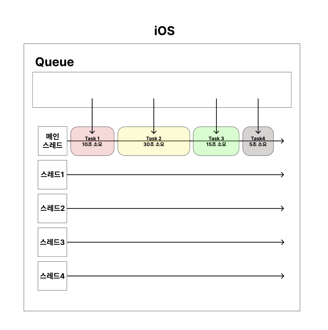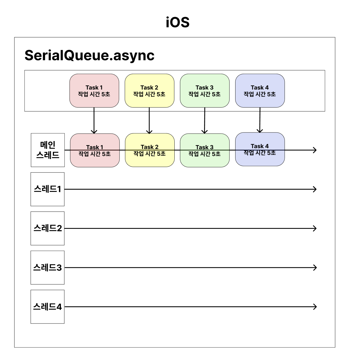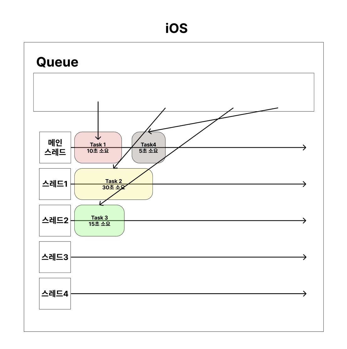 iOS에서는 Task를 Queue에 보내기만 하면 된다