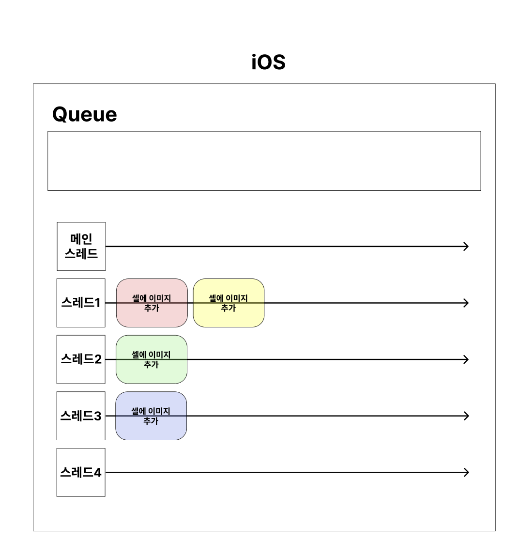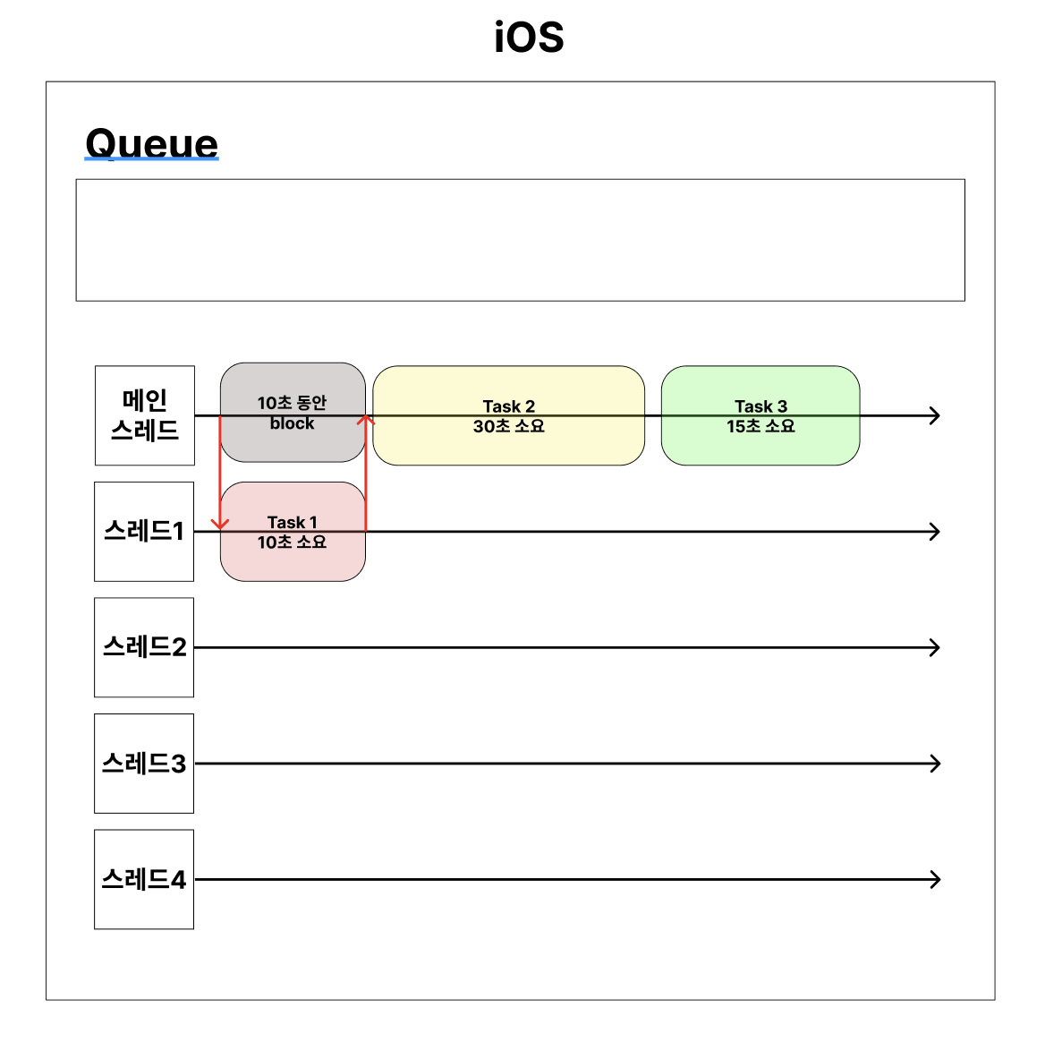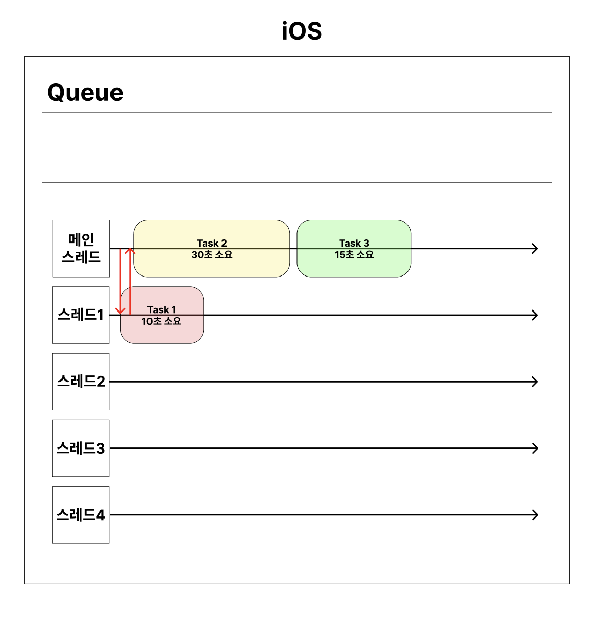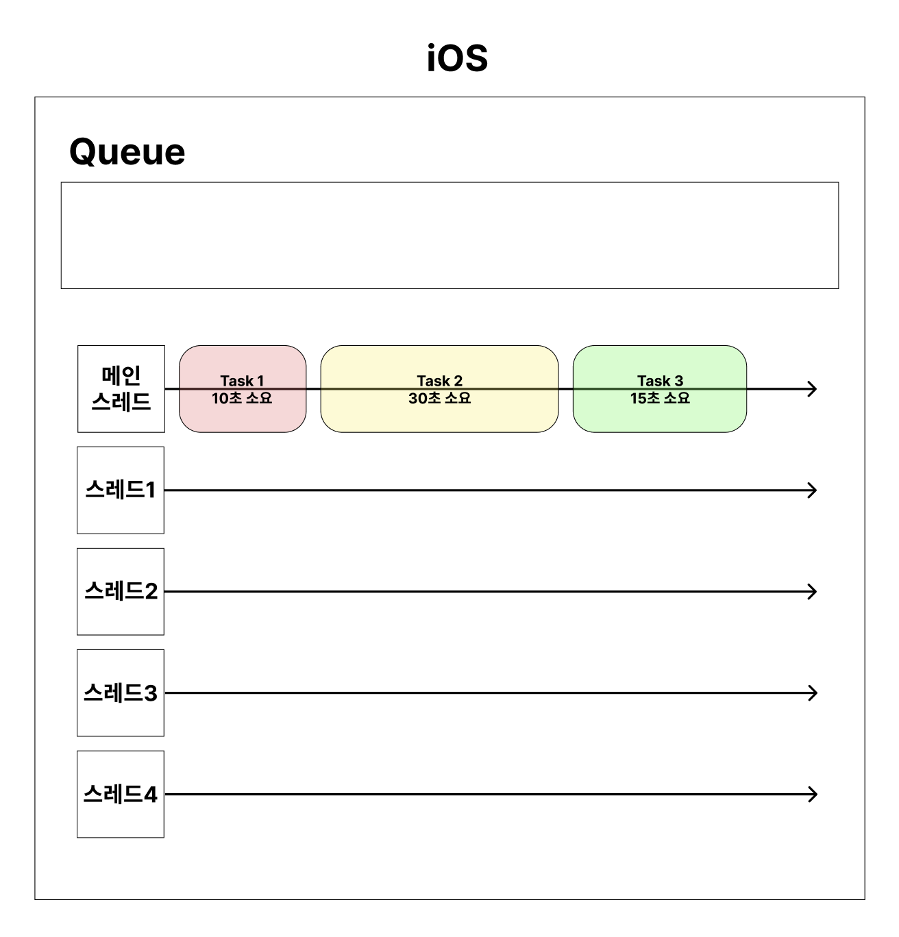 iOS에서는 Task를 Queue에 보내기만 하면 된다