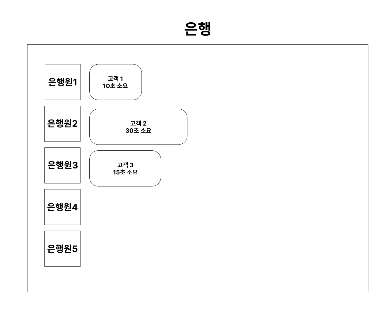 우리가 은행을 갔다고 해보자. 아래와 같이 은행원1에게만 고객이 줄을 선다고 하면