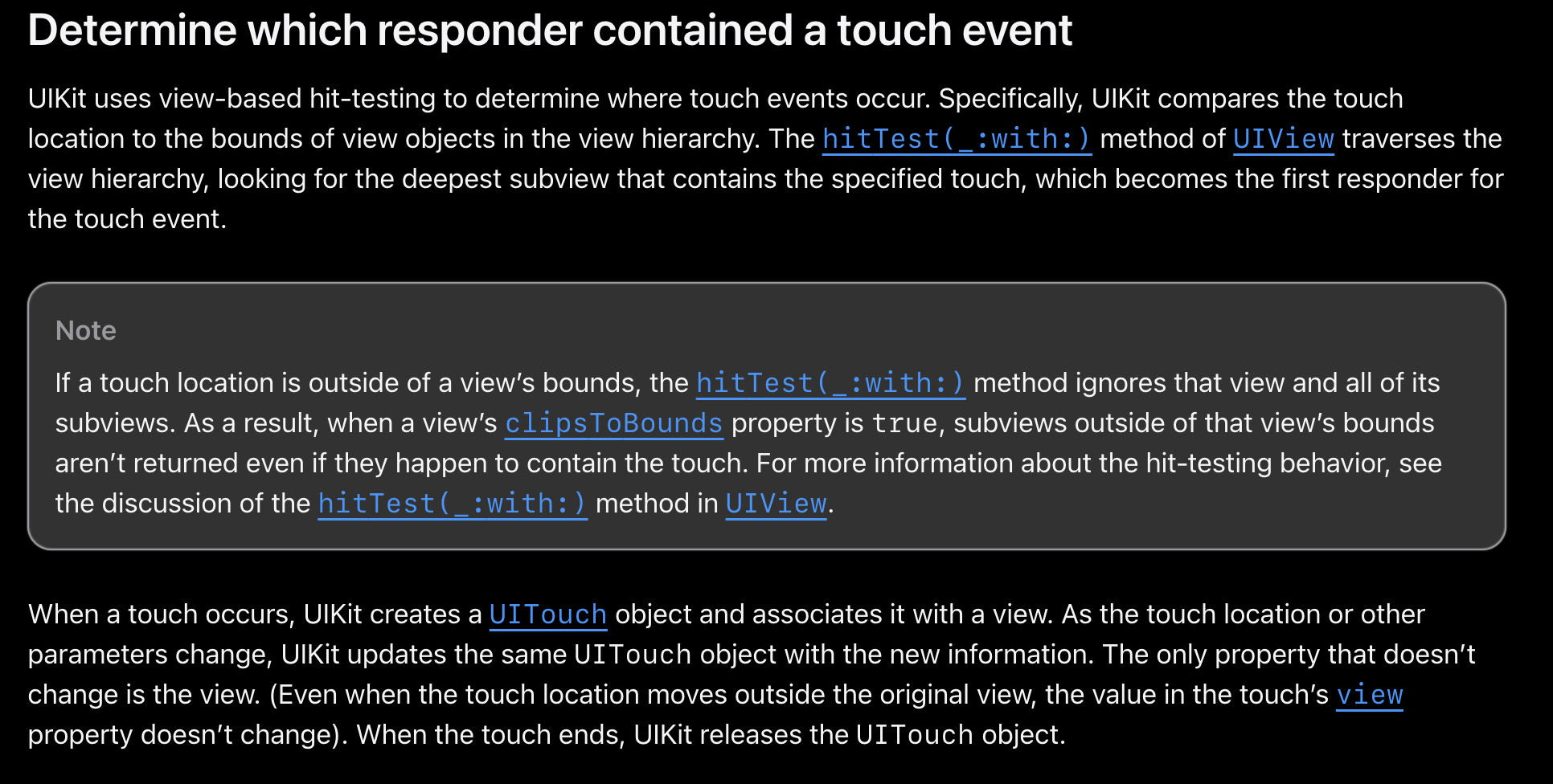 UIKit은 view-based hit-testing을 사용, 터치 이벤트가 어디서 발생했는지를 결정