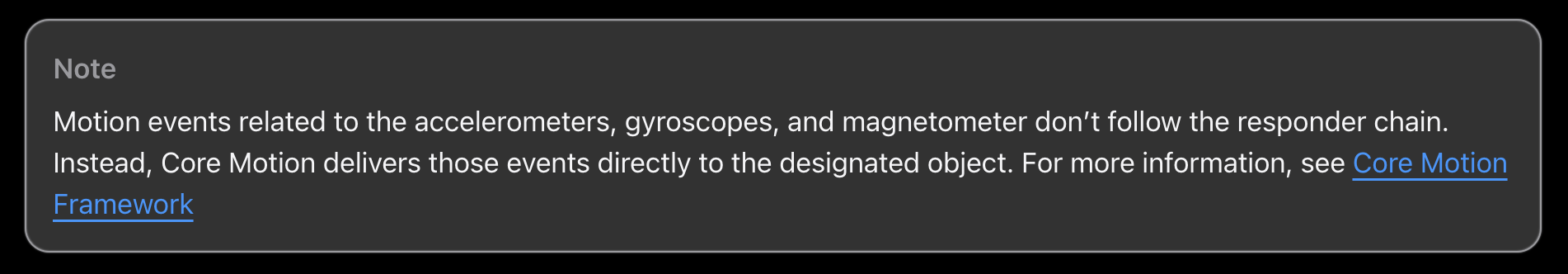 대신 core motion은 이런 이벤트들은 지정된 객체로 직접 전달 함