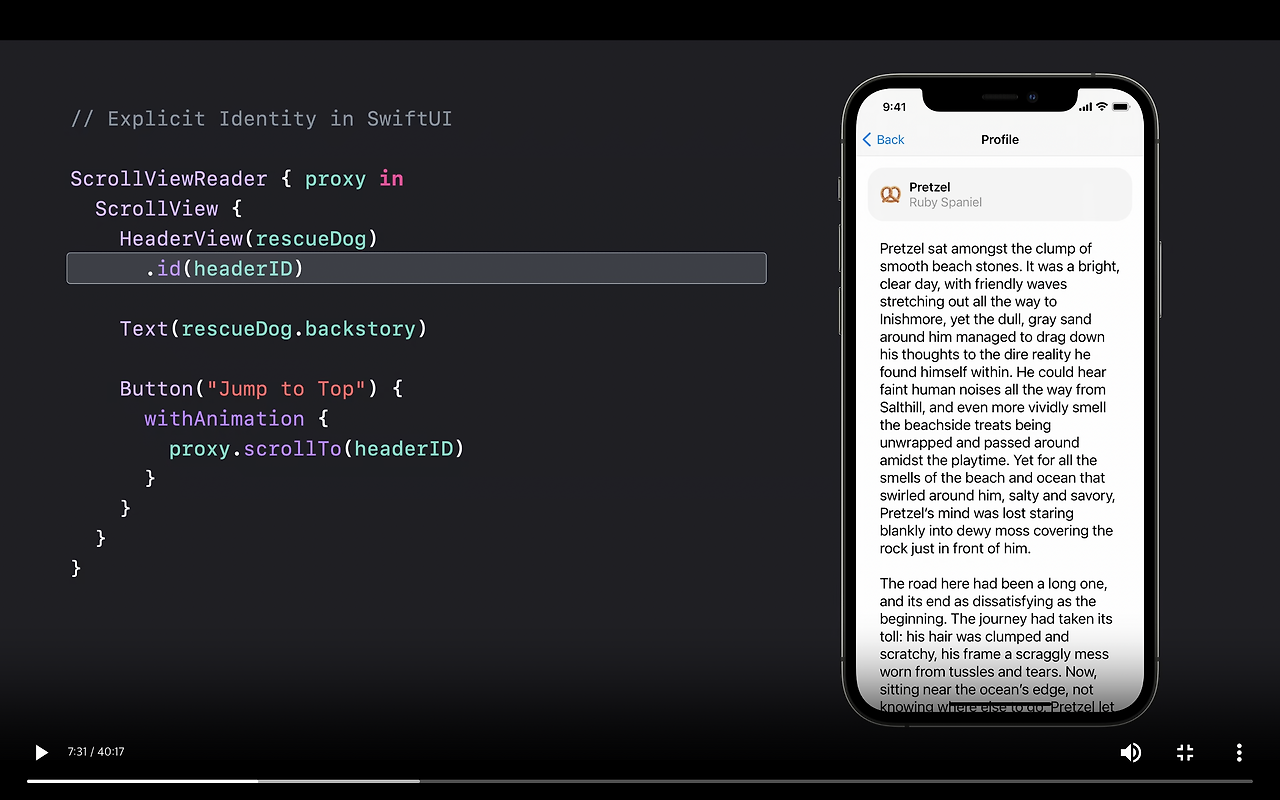 다른곳에서 참조할 필요가 없는 ScrollViewReader ScrollView Text Button 은 Explicit Identity가 필요 없음