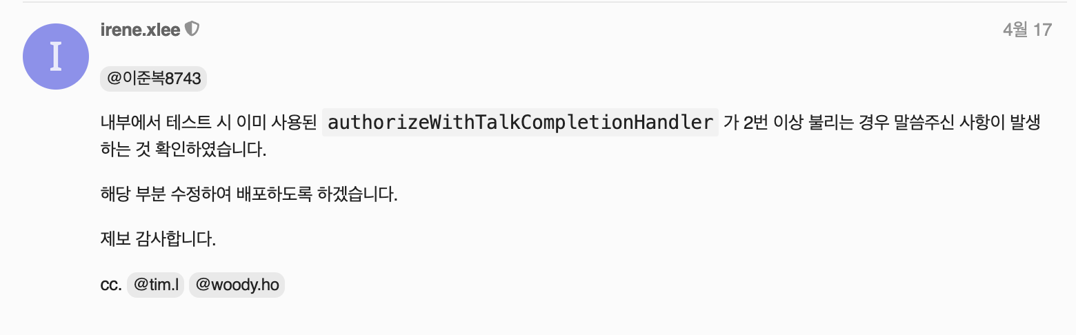 카카오 측에서 오류 확인, 수정 후 배포
