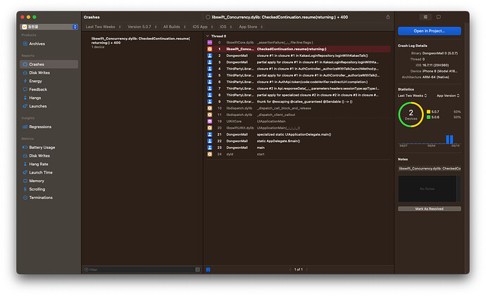 App Crash Report에서 Concurrency 오류 발생