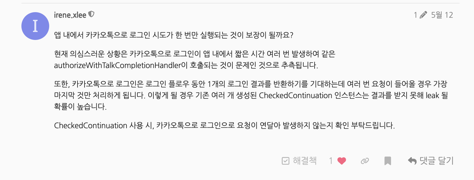 다양한 ThirdPartyLogin을 위해 async/await을 사용하고 있었기때문에 withCheckedThrowingContinuation로 감싼 형태였고