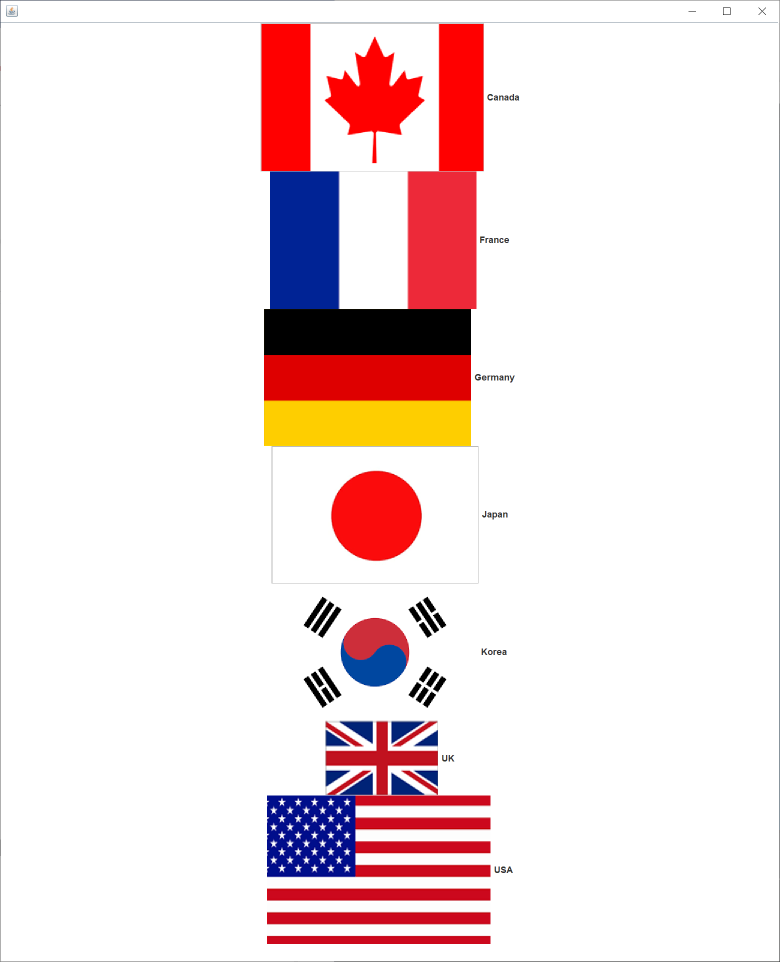 JLabel kr = new JLabel("Korea", icon, SwingConstants.CENTER);